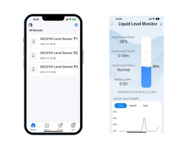 Podporuje také chytrou automatizaci – snadno tak například spustíte čerpadlo při poklesu hladiny. Je vhodný pro monitorování nádrží s vodou, olejem a dalšími kapalinami.