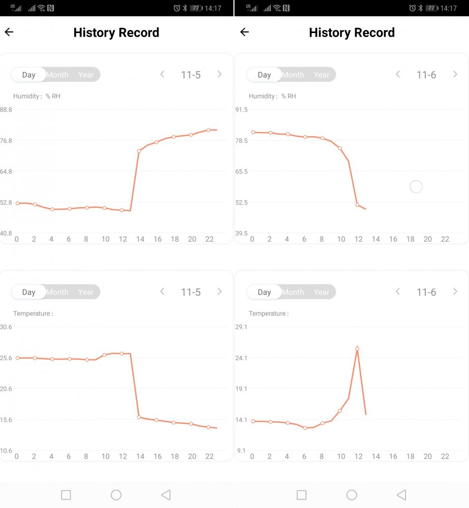 Údaje ze senzoru se přes aplikaci Tuya zaznamenávají v cloudovém úložišti a je tedy možné je kdykoliv i zpětně zobrazit